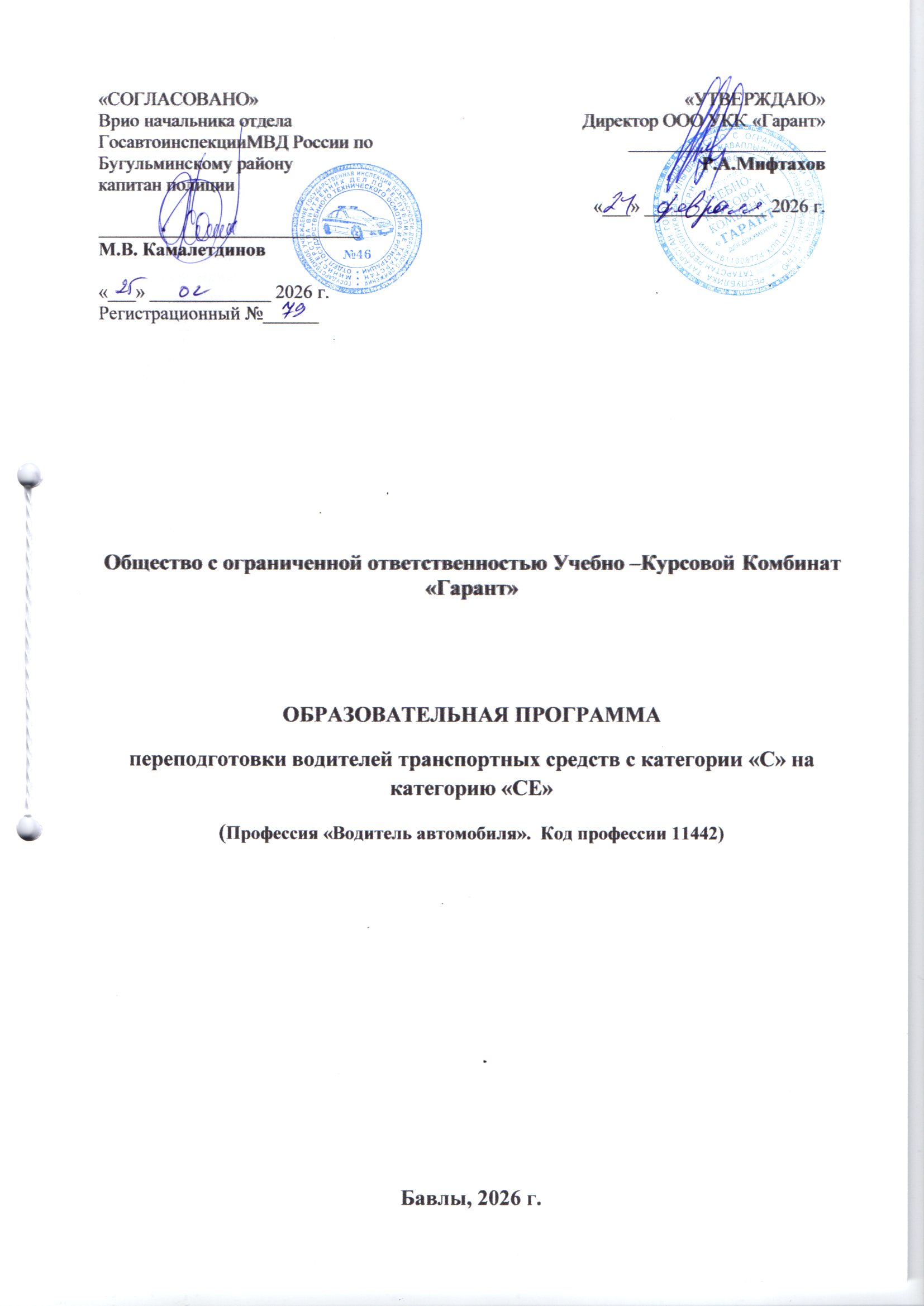 переподготовки водителей транспортных средств с категории «С» на категорию «СЕ»