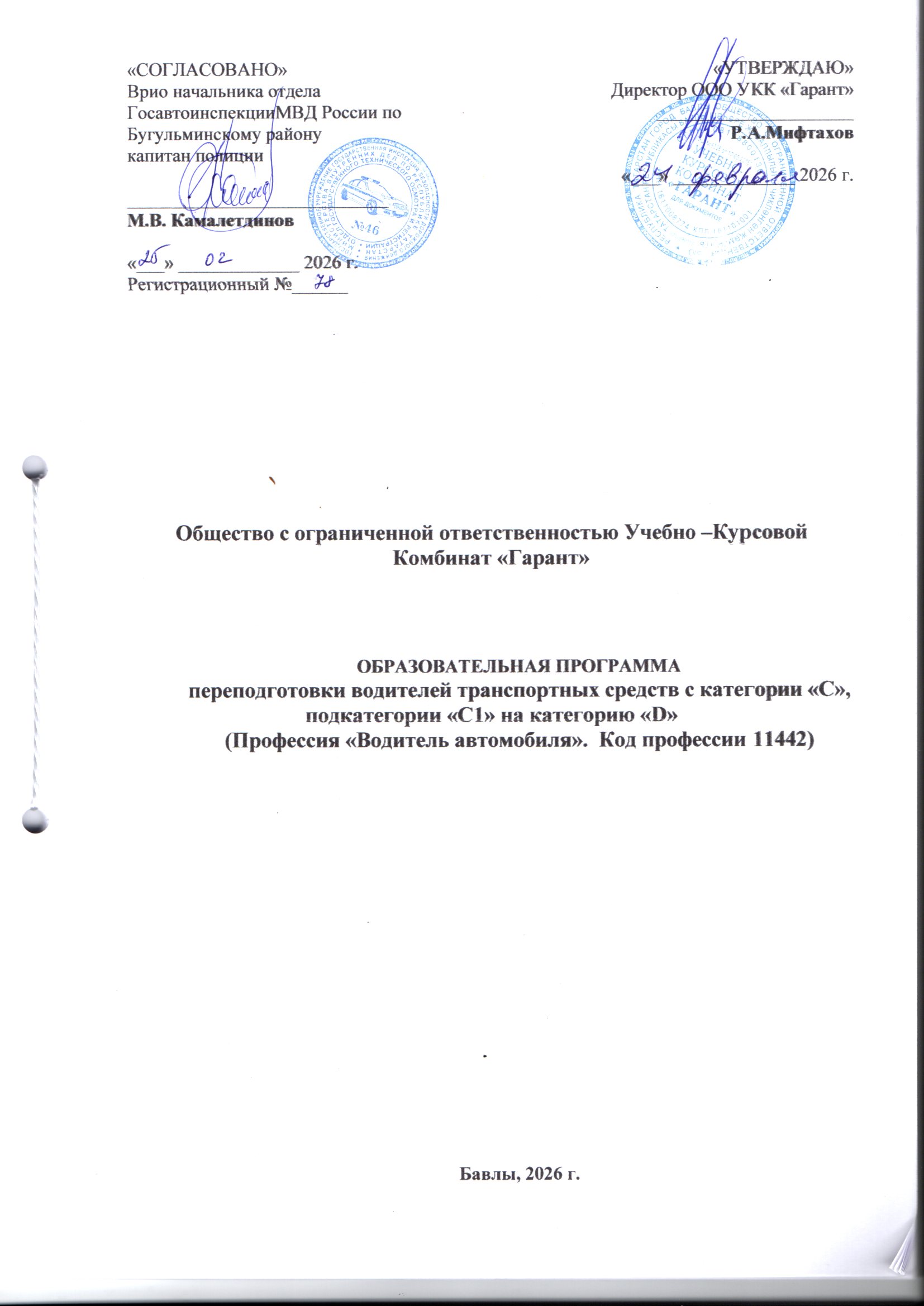 переподготовки водителей транспортных средств с категории «С», подкатегории «С1» на категорию «D»