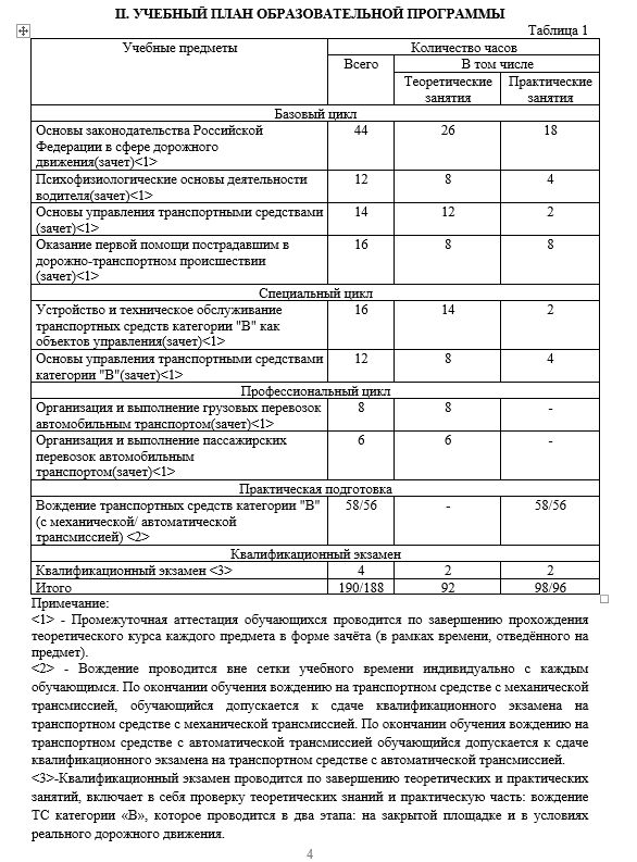 профессиональной подготовки водителей транспортных средств категории «В