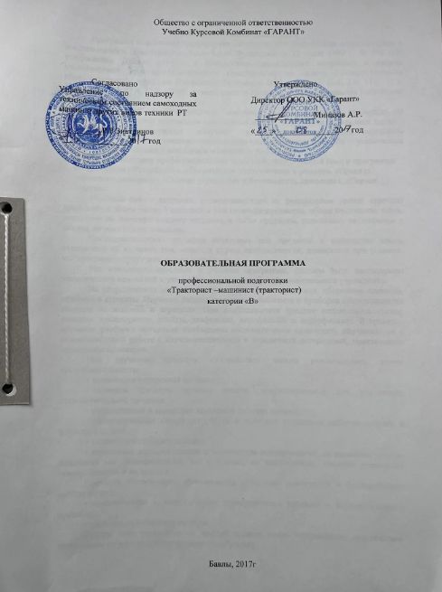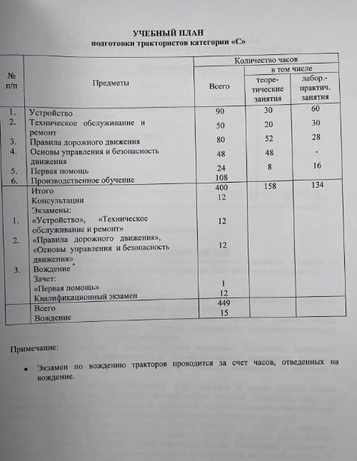ОБРАЗОВАТЕЛЬНЫЕ ПРОГРАММЫ ТРАКТОРИСТА МАШИНИСТА :