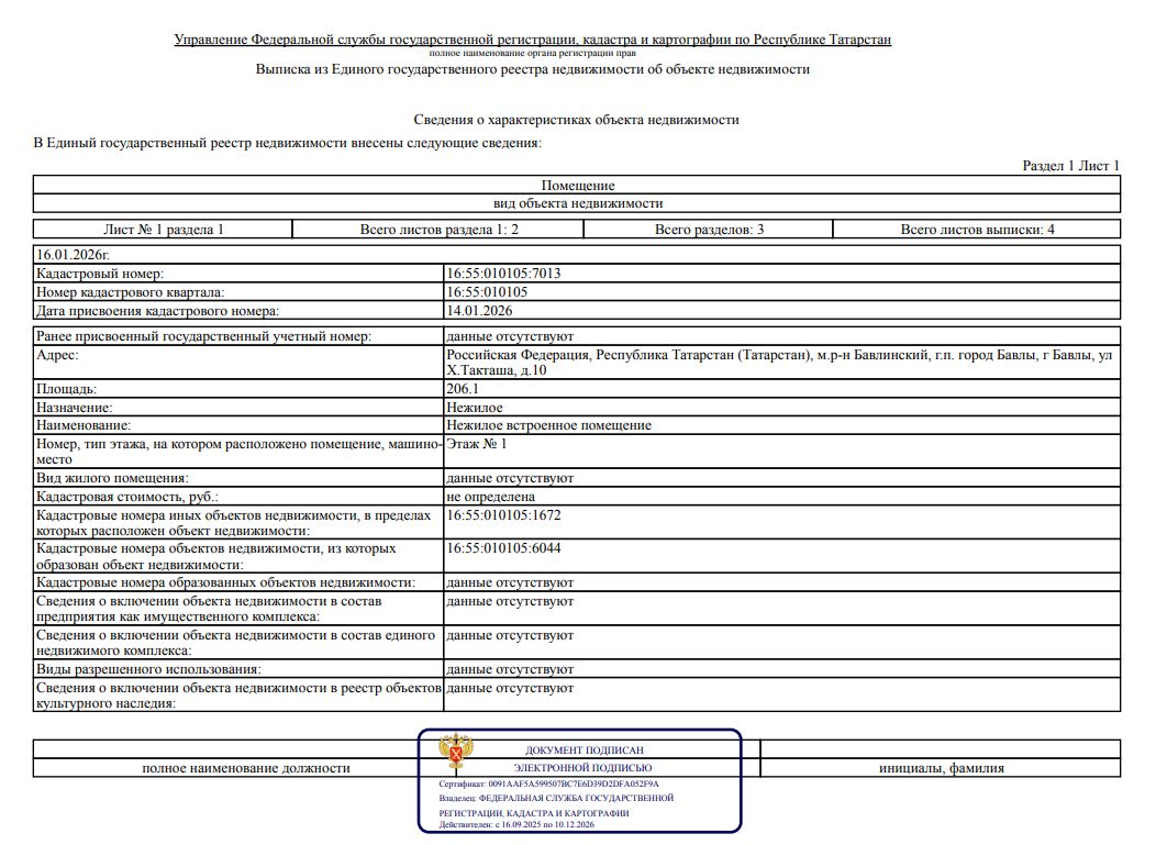 РТ,г.Бавлы , ул.Хади-Такташа 10,этаж 1 помещение 14