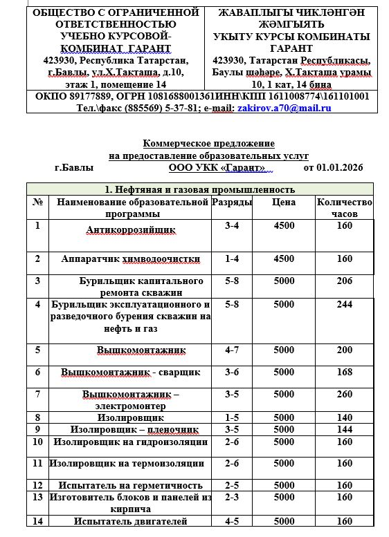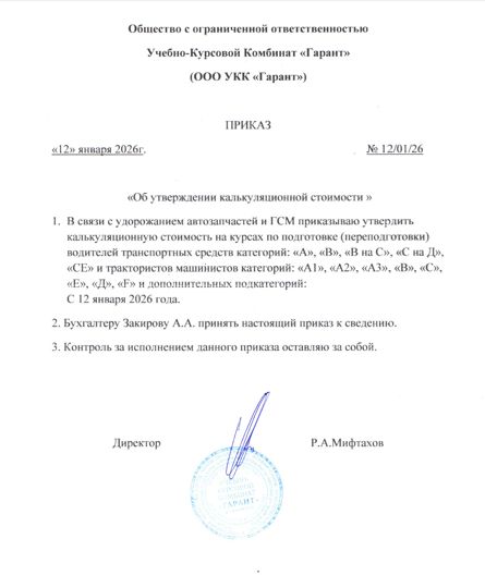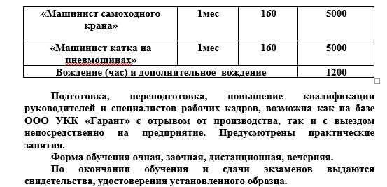 Образовательные услуги по обучению в Учебно-Курсовом комбинате «Гарант» предоставляются на платной основе.