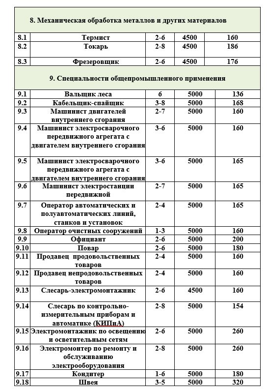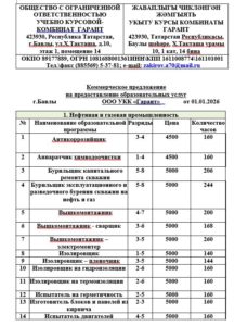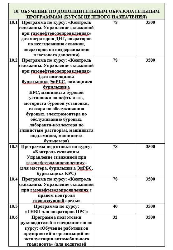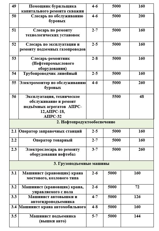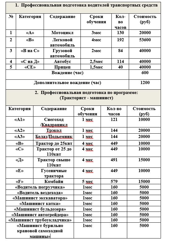*Автошкола * Нефтяная и газовая промышленность * Дорожно-строительные машины * Монтажные и ремонтно-строительные * Слесарные и слесарно-сборочные работы * Механическая обработка металлов *Общепромышленные специальности *Автотранспортные средства *Трактористы Машинисты